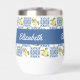 Serene blue tile French country lemon pattern thermal wine tumbler featuring a customizable name, to complement your style in the yoga studio and beyond. Personalize with your name or that of a loved one.