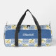 Serene blue tile French country lemon pattern duffle bag featuring a customizable name, to complement your style in the yoga studio and beyond. Personalize with your name or that of a loved one.