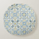 Blue Tile Lemon Rundes Kissen
