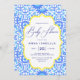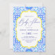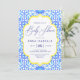 Feiern Sie Ihre kleine Ankunft mit dieser Inspirierten Blue Tile Yellow Baby Shower Einladung! Dieses Design vereint zeitlose italienische Eleganz mit minimalistischem Charme. Freuen Sie sich auf zarte mediterran inspirierte Kachelmuster in blauer Keramik, elegantes gelbes Rahmen und Schriftzeichen für "Baby Shower". Diese Einladung, die mit dem Namen, dem Datum, der Uhrzeit, dem Veranstaltungsort und den UAWG der Ehrenbürgerin individuell gestaltet werden kann, eignet sich perfekt für Eltern, die europäische Raffinesse lieben. Die knallige Blau-Weiß-Palette und der klassische Script-Schriftart schaffen ein vielseitiges, geschlechtsneutrales Design, das sich ideal für moderne oder traditionelle Feste eignet. Personalisieren Sie mühelos für eine wahrheitsgetreue Einladung, die die Wärme des Dolce Vita einfängt.