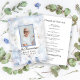 Erinnern Sie sich an Ihre Lieben und feiern Sie ihr Leben mit dem hübschen Blue Tinted Carnation Blume Beerdigung Memorial Service Programm. Diese elegante, maßgeschneiderte Blütenstatur bietet eine digital Aquarellmalung floralen Foto einer weißen Nelkenblüte mit einem hellblauen Farbton. Passen Sie es mit einem Bild der Verstorbenen, der Geburt und des Todes und der Reihenfolge ihrer Feier des Lebens Kirchendienst.