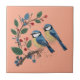 Modern cottage core quilling design featuring two Blue Tit birds sitting on a vine of berries and delicate blue flowers ceramic tile.