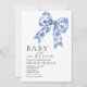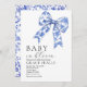 Blue Toile Bow Baby Dusche Einladung