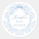 Blue Toile Bow Frame Chic Baby Boy Shower Runder Aufkleber