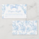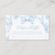 Die elegante Verlosungskarte, die speziell für eine zeitlose Chabby-Chic Coquette Babydusche entworfen wurde. Diese Karten sind mit einer niedlichen Baby Blue Bogen Krawatte verziert und verfügen über ein Vintages, inspiriertes Blumenmuster im Hintergrund. Leckerei der Gäste zu diesen charmanten und raffinierten Akzenten für Ihren Anlass.