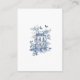 Elegant Blue Toile De Jouy QR Code Hochzeitsdetails. Ein blaues Toile de jouy Blumendesign ist auf der Vorderseite links und auf der Rückseite kleiner.