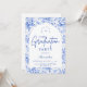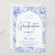 An elegant graduation celebration design featuring a delicate blue toile floral border inspired by classic European porcelain and vintage botanical prints. The intricate florals frame a clean arched center panel, creating a refined and timeless composition that highlights the graduate’s name and event details beautifully. Soft blue tones against a crisp ivory background give the design a sophisticated yet celebratory feel. Perfect for a stylish graduation gathering with a classic, romantic aesthetic.