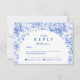 An elegant graduation celebration design featuring a delicate blue toile floral border inspired by classic European porcelain and vintage botanical prints. The intricate florals frame a clean arched center panel, creating a refined and timeless composition that highlights the graduate’s name and event details beautifully. Soft blue tones against a crisp ivory background give the design a sophisticated yet celebratory feel. Perfect for a stylish graduation gathering with a classic, romantic aesthetic.