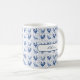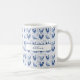 Genießen Sie den Kaffee in französischer Sprache mit der blauen und weißen Tasse des Hühnerschnitts. Ein ummantelter Kacheldruck Vintager Hennen und Hähne umrahmt ein individualisierbares Namensschild und schafft so ein zeitloses Stück, das in jedem Bauernhaus, in jedem Bauernhof oder in der französischen Provinzküche schön aussieht. Einfach auf Zazzle personalisieren - geben Sie einen beliebigen Namen oder ein Monogramm ein und wählen Sie die gewünschte Tasse aus. Ein nachdenkliches Geschenk für Hühnerfreunde, Hausbesucher, Mütter, Großmütter und Fans von Dekorationsfächern für Geburtstage, Hauswärme, Muttertag oder Weihnachten.