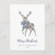 Dieses Design ist in blauen französischen Töpfern- und Kokettenstilen gehalten und mit einer Rentiergrafik vermischt. Text: "Frohe Weihnachten", editierbar für den Gruß Ihrer Wahl und einfach mit Ihrem persönlichen oder Familiennamen anpassen.