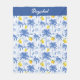 Blue Toile Palm Trees Lemons Monogram Name Fleecedecke