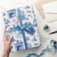 Blue Toile Seamless Pattern Vintage Winter Holiday Geschenkpapier