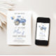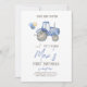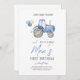 Die Einladung zum Geburtstag beinhaltet einen niedlichen blauen Traktor mit bunten, hinterrückenden Ballons, und der Name wird in großen, fröhlichen Briefen hervorgehoben. Es geht um Spaß und Spannung für den bevorstehenden Geburtstagsbash zum Traktor-Thema der Landschaft!
