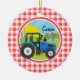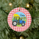 Blue Traktor; Rot und Weiß Gingham Keramik Ornament