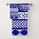 Bath towel set, consisting of a face cloth, hand towel and bath towel with a tribal design. You can customise this bath towel set with any text of your choice. Should you require any help with customising then contact us through the message link on this page. Tribal design bathroom towel set