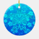 Ozeanblau Schildkrötendesign inspiriert durch polynesische Tätowierungen. Ozeanblauer Hintergrund von blauen Hawaiianischen Honu Meeresschildkröten und Hibiskus-Blume.