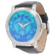 Ozeanblau Schildkrötendesign inspiriert durch polynesische Tätowierungen im Zentrum eines Maori-Sonnenzeichens. Ozeanblauer Hintergrund der blauen Hawaiianischen Honu-Meeresschildkröten und blauen Hibiskus-Blume.