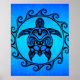 Blue Tribal Turtle Sun Poster