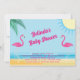 Diese rosa und blaue, tropische Baby Dusche Einladung wird mit ein paar niedlichen Flamingos akzentuiert, sodass es ein spielerisches und Retro Barbiecore Gefühl. Sollten Sie zusätzliche Koordinierungsaufgaben benötigen, kontaktieren Sie uns bitte unter prettyfancyinvites@gmail.com mit Ihrer Anfrage.