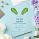 Diese elegante Hochzeitseinladung am Strand eignet sich perfekt für eine Hochzeit an der Küste. Das romantische Design besteht aus grünen Palmen-Blätter mit eleganter blauer Typografie auf einem klaren Acrylhintergrund.