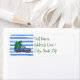Das Blue Truck Rücksendeetikett zeigt Little Blue Truck inspirierte Grafik mit blau-weiß gestreiftem Hintergrund.
