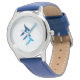 Kinderuhr aus Edelstahl mit blauem Lederarmband