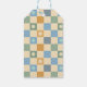This groovy boys 2nd birthday Favor tag design has two smile faces on the front with ‘thank you’ in retro script, and includes space for a name. The back features a matching retro smile pattern. Perfect for a cute "Two cool dude" boho birthday.