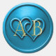 Blue Two Hearts Intertwined Monogram Wedding Runder Aufkleber