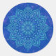 Aqua lace mandala auf einem blauen Hintergrund-Label. Dieser Mandala-Aufkleber könnte auch auf einem quadratischen Aufkleber schön aussehen.