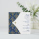 Elegantes blau-goldenes Kreuz mit goldener Damast Baby Taufe und Taufe Einladung. Dieses elegante, weiße, blaue und goldene Taufdesign wirkt für Jungen oder Mädchen. Es handelt sich um ein bedrucktes Design ohne erhöhte oder geprägte Flächen.