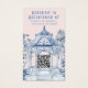 Diese Geschenkgutscheine verfügen über blaue und weiße Chinoiserie Gazebo. Oben steht ein Text, der "Geschenkregistrierung" lautet. Die Vorderseite der Karte kann mit allen Registrierungsdaten versehen werden, die Ihre Gäste zum Kauf von Artikeln auf Ihrer Wunschliste benötigen. Diese Karte hat einen QR-Code, um die Geschenkregistrierung zu verbinden.
