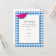 Diese lustige Einladung hat einen blau-weiß karierten Tischdecken-Hintergrund, der an altmodische Sommer erinnert. An der oben links Ecke befindet sich eine Wassermelone. Ihr benutzerdefinierbarer Text wird in einem weißen Zentrum zentriert. Dies ist eine ideale Einladung für ein Picknick, eine Wiedersehen, Grillen, ein Gedächtnistag oder um die Sommersaison am Werktag zu beenden.