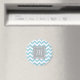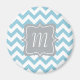 Ein blau-weiß Zickzack Zickzackmuster hat einen hellgrauen Monogramm-Rahmen mit anpassbarem Initial.