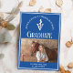 Diese benutzerdefinierte blaue Abschluss-Ankündigungskarte für Tierärzte zeigt eine weiße Typografie für eine Klasse von 2024 Absolventen über Ihrem studentischen Foto. Passen Sie mit Ihrem geschlossen Jahr unter dem Tierarztkatukus an und fotografieren Sie für eine große personalisierte Tierarztkarte.