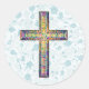Blue Vintag Style Faith Cross Runder Aufkleber