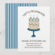 This cheerful blue birthday invitation features a charming hand-drawn cake with sweet vintage details and a classic striped back. The warm, playful artwork sets a festive tone for milestone celebrations of any age. Your party details are centered beautifully, making the design feel both personal and timeless. This birthday invitation is perfect for anyone planning a fun, family-friendly gathering.