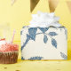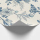 A detailed vintage floral illustration in blue tones, featuring delicately drawn branches, leaves, and blossoms on a light background, creating a classic and elegant botanical look. Toile-de-Jouy