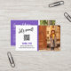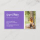 Content Creator Visitenkarte mit einem charmanten Pinsel-Skript, blauer violetter Akzent-Farbe, niedlichen Social Media Icons und Ihrem QR-Code zusammen mit zwei Fotos von sich selbst oder Ihrem Unternehmen, eine auf beiden Seiten der doppelseitigen Social Media Visitenkarte. Lila Visitenkarte für einen mit Fotos, QR-Code und Kontaktinformationen personalisierten Einflusspersonal.