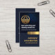 Auf der Rückseite, in einem leichteren blauen Deckel, ist das Gold Logo oben, gefolgt von Ihrem prestigeträchtigen Namen, Kontaktdaten und Slogan Option.