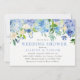 Unsere Bridal Dusche Einladung mit Pastel Blue Watercolor Hydrangea Lavender Blume und Blätter.