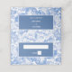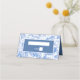Dieses Design zeigt wunderschöne blaue Abbildungen Vintager botanischer Blume im Garten. Der Hochzeitstext ist mit einem passenden blauen Rahmen gerahmt. Dieses blaue Blumendesign schafft ein elegantes, rustikales, blumengeschmücktes Landschaftsbild. Elegantes Hochzeitsdesign mit modernen Elementen in der Platzkarte. Auch die passenden Hochzeitseinladungen und andere Schreibwaren sind verfügbar.