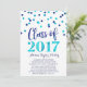 Graduation Party Einladung individuelle Foto-Card Klasse von 2017 in dunkelblau, aquamarin und türkisblau Aquarell Konfetti und moderne handgeschriebenen Stil Text.