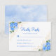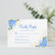 Blue Watercolor Floral Gold Wedding RSVP Card Karte