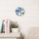 Blue Watercolor Floral Painted Botanical Whimsical Runde Wanduhr
