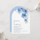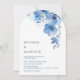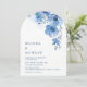 This elegant contemporary wedding invitation features watercolor painted blue flowers on a white background.