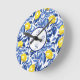 Blue Watercolor Lemon Patten Monogram Runde Wanduhr