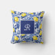 Blue Watercolor Lemon Pattern Monogram Kissen
