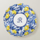 Blue Watercolor Lemon Pattern Monogram Rundes Kissen