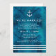 Diese trendigen Einladungen nach der Hochzeit sind mit einem blauen Aquarell-Hintergrund, weißen Streifen und einem nautischen Anker ausgestattet.