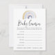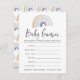 Niedliche Babydusche mit Spielkarte mit einem goldenen und blauen Wasserfarbenregenbogen oben. Der Begriff "Baby Ratings" wird in einem modernen Kalligraphieskript vorgestellt. Personalisieren Sie Ihre Wünsche mit individuellen Instruktionen, Kriterien und dem Mama-to-be-Namen und dem Baby-Duschdatum. Das Design koordiniert mit unserer Niedlichen und farbenfrohen Wasserfarbenschleife und Kinderkollektion.